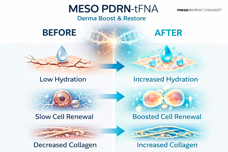 Kurset tager udgangspunkt i PDRN og tFNA-teknologi, som arbejder målrettet med hudens egen reparations- og regenerationsproces. Behandlingen understøtter cellefornyelse, forbedrer hudens struktur og elasticitet, reducerer synlige linjer og bidrager til en mere ensartet, vital og ungdommelig hud.