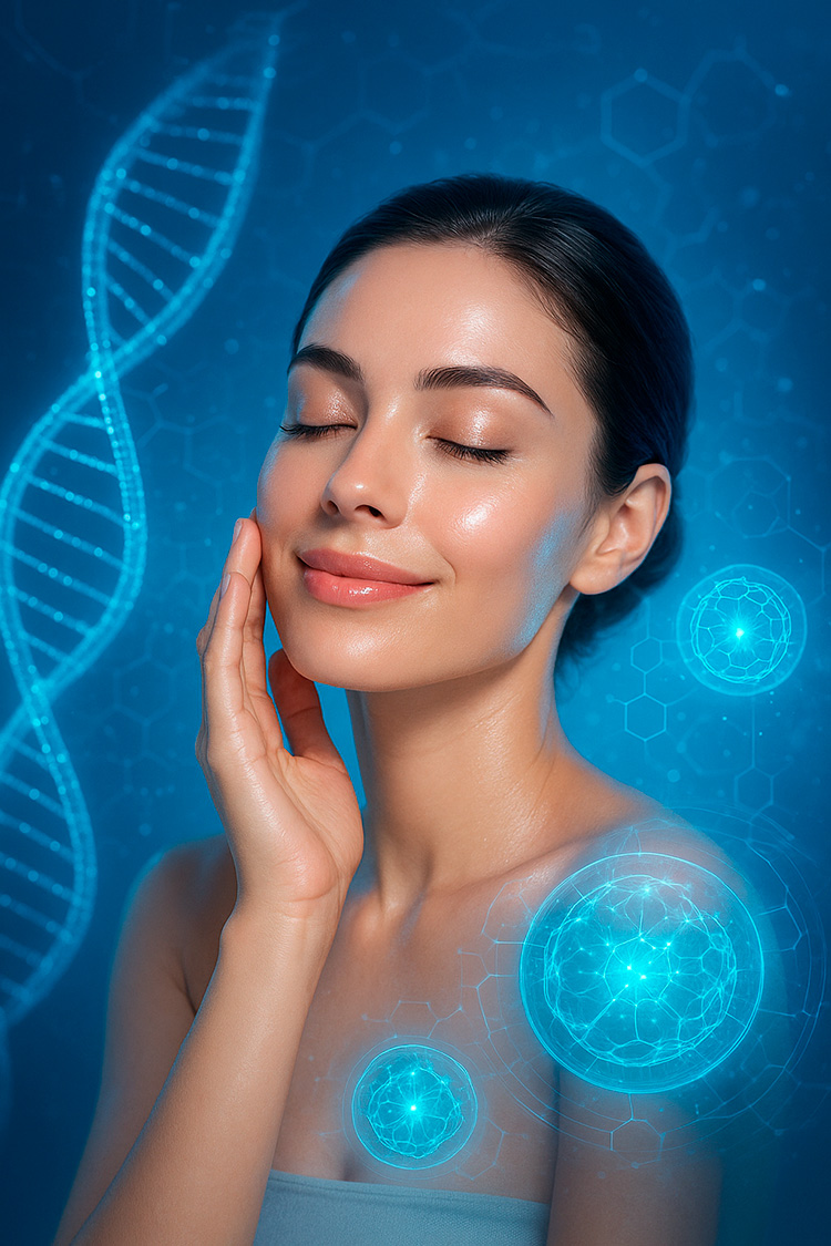 Bio-authentic exosome delivery system™ – efterligner naturlig cellekommunikation, øger fibroblast-glykolyse og kollagenproduktion.